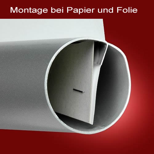 maximale Leistenlänge: 1900 mm Leistendurchmesser: 40 mm Leistenfarbe: PAS - brilliantaluminium Papierfleischanspruch: oben und unten je 40 mm, maximal 34 mm Weißrand, 6 mm als Farbüberfüllung Aufhängung: Oberleiste mit Dreieckaufhänger/Kunststoff/alufarben Lochabstand 200 und 400 mm Oberleiste links und rechts je 1 mal gelocht mögliches Aufhängezubehör: Metall- Deko- Haken mit 1500 mm Perlonfaden und Splint Feinseil- Dreieckaufhänger, Lochabstand 200, 400, 600, 800 mm höhenverstellbare Feinseilaufhänger Oberleiste links und rechts je 1 mal gelocht Zubehör: mit je Paar 2 oder 4 Befestigungspappstreifen Verpackung: lose in Kartons paarweise in Polyschlauch Bei Stoffdrucken: Bei Stoffdrucken wird oben und unten ein Tunnel mit einem Durchlass von 8 mm genäht. In diesen Tunnel wird das Stabilisierungselement eingeschoben. Über den gefüllten Tunnel wird dann die Hohlrundleiste geschoben |