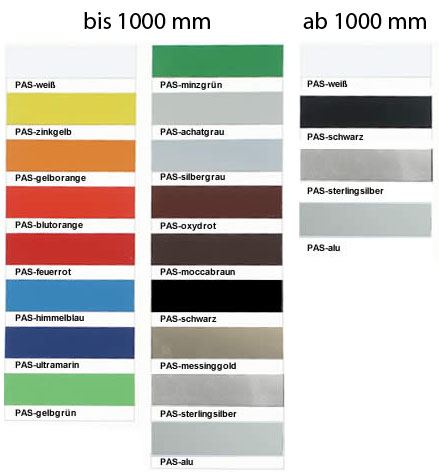 Leistenfarbe: bis 1000 mm nach Farbkarte PAS-STANDARD