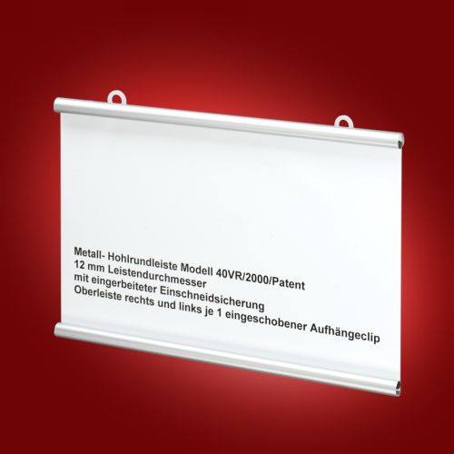 Oberleiste links und rechts je 1 eingeschobener Aufhängeclip