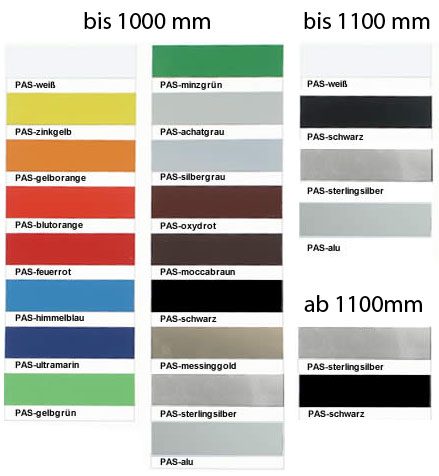 Leistenfarbe: bis 1000 mm - nach Farbkarte PAS-STANDARD